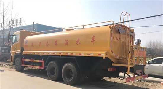 上裝配置:罐體采用5mm厚武鋼集團供應的罐車專用板材制作,容積:20立方;罐內3道防浪隔板具有防波作用,減低罐內液體的沖擊。配備國內大功率灑水車專用水泵,可自吸自排,引水時間<15min,流量60m3/h,揚程90米。東風天龍灑水車其它專用部分標配為:前沖、后灑、側噴、后工作平臺、360度可調節綠化水炮,水泵垂直吸程≧7米,前沖灑水寬度≧16米,綠化水炮射程≧35米,自流閥、濾網、消防接口(可連接消防栓取水,可作應急消防用)。罐前量管(觀察罐內水位)、罐后爬梯、罐上罐口帶簡易護欄、罐側雙炮筒、6米長4寸鋼絲塑膠管兩根,罐體表面雙層油漆工藝,防銹、耐腐蝕,其余有廠家標配。可選擇加裝加裝藥盤、氣動控制閥、噴藥設備、罐內防腐等。