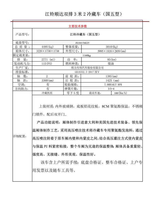 江鈴順達雙排3米2冷藏車
