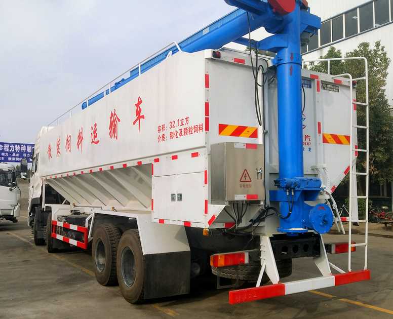 散裝飼料車,又名散裝飼料運(yùn)輸車,飼料運(yùn)輸車。結(jié)構(gòu)簡(jiǎn)單、性能可靠、輸送量大、操控方便、機(jī)動(dòng)性強(qiáng)、對(duì)物料無污染等特點(diǎn),廣泛應(yīng)用于各大中小型養(yǎng)殖企業(yè)的飼料的運(yùn)輸。