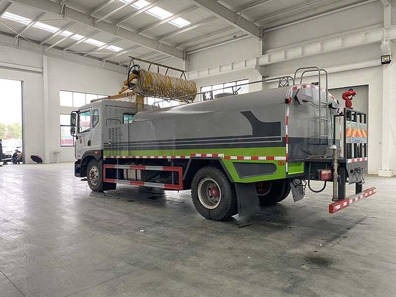 上裝罐體嚴(yán)格按公告尺寸制作,公告容積為:9.77立方米,實(shí)際容積約為12立方,罐體材質(zhì)采用Q235碳鋼材質(zhì)制作,前后封頭約為5mm,防浪板約為3mm,罐體防腐,上裝標(biāo)配為:前沖、后灑、側(cè)防護(hù)、爬梯、后置工作平臺(tái)及S型高炮,炮調(diào)劑大雨、小雨、毛毛雨、采用灑水車大功率專用水泵。